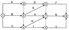 某工程双代号网络计划如下图所示,工作C的后续工作有()。A、工作J B、工作H C、工作I D、工作K E、工作L