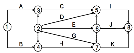 选项 A、多个起点节点 B、存在循环回路 C、多个终点节点 D、节点编号有误 E、工作代号重复