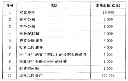 解析 根据中国人民银行规定的口径,目前我国商业银行核心资本即所有者权益,包括实收资本、资本公积、盈余公积和未分配利润。因此,该商业银行的核心资本=16000+5000+3000+2000=26000(亿元),故本题选B。