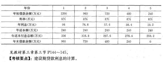 解析 :等额还本、利息照付是指在还款期内每年等额偿还本金,而利息按年初 借款佘额和利息率的乘积计算,利息不等,而且每年偿还的本利和不等。计算步骤 如下: (1)计算建设期末的累计借款本金和未付的资本化利息之和Ic; (2)计算在指定偿还期内,每年应偿还的本金A: A=Ic/n 式中 n—^贷款的偿还期(不包括建设期); (3)计算每年应付的利息: 年应付利息二年初借款余额X年利率 (4)计算每年的还本付息额总额。 根据题中条件,计算过程见下表。