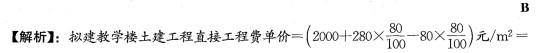 问题 拟建某教学楼,与概算指标略有不同,概算指标拟定工程外墙贴面瓷砖,教学楼 外墙面干挂花岗石。该地区外墙面贴瓷砖的预算单价为80元/m2,花岗石的预算单价为 280元/m2。教学楼工程和概箅指标拟定工程每IOOtn2建筑面积中外墙面工程量均为 80m2。概箅指标土建工程直接工程费单价为2000元/m2,措施费为170元/m2。则拟建教 学楼土建工程直接工程费单价为( )元/m2