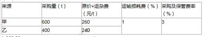问题 从甲、乙两地采购某工程材料,采购量及有关费用如下表所示。该工程材料的材料单价为()元/t。