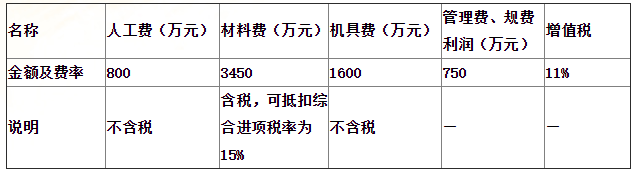 问题 某建筑工程的造价组成见下表,该工程的含税造价为( )万元。