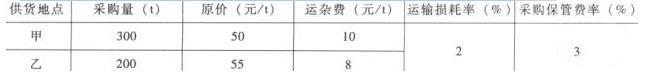问题 (2013年)某材料自甲、乙两地采购,相关信息如下表所示,则其材料单价为()元/t。