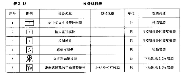 某商厦一层火灾自动报警系统工程平面图和系统图,如图3-3A、3-3B 所示,设备材料明细,见表3-18。 设计说明: 1.火灾自动报警系统...