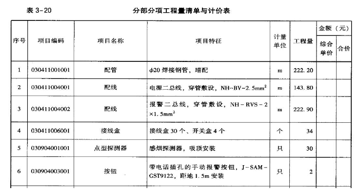问题 某商厦一层火灾自动报警系统工程平面图和系统图,如图3-3A、3-3B 所示,设备材料明细,见表3-18。 设计说明: 1.火灾自动报警系统线路由一层保卫室消防集中报警主机引出,水平、垂直穿管敷设,焊接钢管沿墙内、顶板暗敷,敷设高度为离地3m。 2.WA1 为报警(联动)二总线,采用NH-RVS-2×1.5,WD1 为电源二总线采用NH-BV-2.5。 3.控制模块和输入模块均安装在开关盒内。 4.自动报警系统装置调试的点数按本图内容计算。 5.消防报警主机集中式火灾报警控制器安装高度为距地1.5m,箱体尺寸:400×300×200(宽×高×厚,mm)。 6.平面中火灾报警联动线途经控制模块(C1、N)时为四根线,两根DC24V 电源线,两根报警线,共管敷设,穿φ20 焊接钢管沿顶板,墙内暗敷,未通过控制模块的为二根报警线,穿φ20 焊接钢管沿顶板,墙内暗敷。 7.配管水平长度见图3-3A 括号内数字,单位为米。 问题: 1.根据图示内容和《通用安装工程工程量计算规范》和《计价规范》的相关规定,分部分项工程的统一编码,见表3-19。列式计算配管及配线的工程量,并编制其分部分项工程量清单。 2.根据招标文件和常规施工方案,假设该安装工程计算出的各分部分项工程人材机费用合计为100 万元,其中人工费占25%。单价措施项目中仅有脚手架子目,脚手架搭拆的人材机费用0.8 万元,其中人工费占20%;总价措施项目费中的安全文明施工费用(包括安全施工费、文明施工费、环境保护费、临时设施费)根据当地工程造价管理机构发布的规定按分部分项工程人工费的22%计取,夜间施工费、二次搬运费、冬雨季施工增加费、已完工程及设备保护费等其他总价措施项目费用合计按分部分项工程人工费的10%计取,其中总价措施费中人工费占30%。 企业管理费、利润分别按人工费的50%、30%计。暂列金额1 万元,专业工程暂估价2 万元(总承包服务费按3%计取),不考虑计日工费用。 规费按分部分项工程和措施项目费中全部人工费的25%计取; 上述费用均不包含增值税可抵扣进项税额。增值税税率按9%计取。 编制单位工程招标控制价汇总表,并列出计算过程。