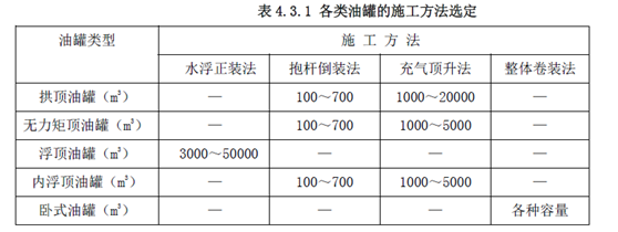 解析 根据金属油罐的不同结构,可选用机械正装法、抱杆倒装法、卷装法、充气顶升法和水浮正装法(参见表5.4.1)。