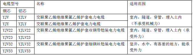 选项 A.交联聚乙烯绝缘聚氯乙烯护套电力电缆 B.交联聚乙烯绝缘聚乙烯护套电力电缆 C.交联聚乙烯绝缘聚氯乙烯护套双钢带铠装电力电缆 D.交联聚乙烯绝缘聚氯乙烯护套细钢丝铠装电力电缆