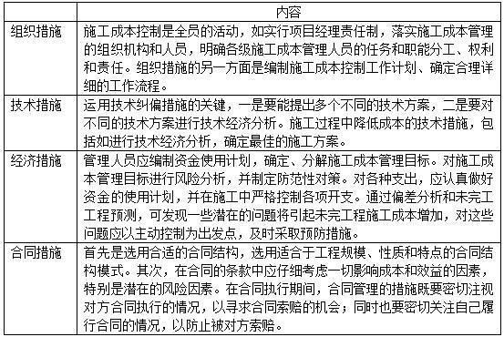 解析 本题主要考查施工成本管理的措施。 为了取得施工成本管理的理想成效,应当从多方面采取措施实施管理,通常可以将这些措施归纳为四个方面: 综上所述,本题正确答案为A。