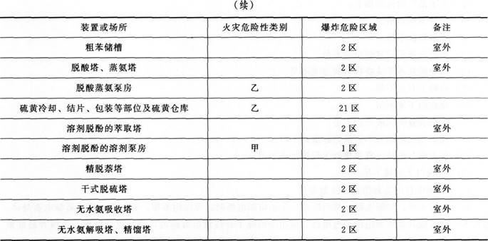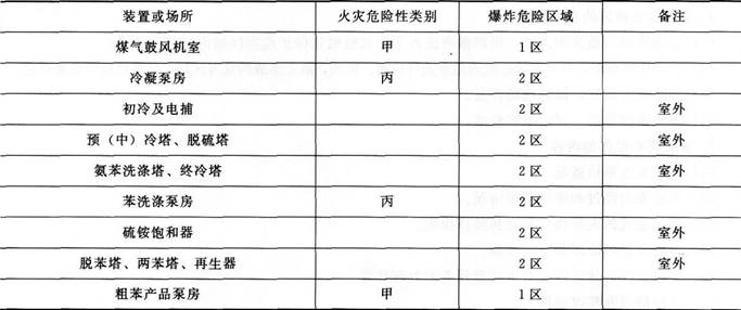 解析 煤气净化区域主要生产场所建筑物火灾危险性分类和爆炸危险环境区域划分如下: