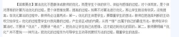 问题 北师大版《数学》三年级上册《需要多少钱》(两位数乘一位数的口算)的教学片段:①出示买卖的情境图(图标有泳圈的单价l2元,篮球的单价15元)。②引导学生提出数学问题。③探索算法多样化。师:买3个球需要多少钱?算式怎样列? 生:l5*3一师:应该怎样算呢?生1:我用加法15+15+15=30+15=45(元)生2:我用乘法10*3=305*3=1530+15=45(元)生3:把l5看成3个5,共有9个5,得45(元)师:你喜欢用什么方法?生1:用加法。师:用加法也可以。生2:用乘法。师:好的。 ④练习70*5—24*2—13*5—31*3—34*2—24*4一师:你喜欢用什么方法就用什么方法。学生练习时,笔者观察了7位小朋友所用的方法,其中有4位是采用加法的…… 问题:请从算法多样化与优化的层面上加以分析。