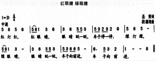解析 (1)《红眼睛绿眼睛》是一首生动、有趣的歌曲。歌曲用生动的比喻,形象地概括了“红灯停绿灯行”的交通规则,易为学生所接受。歌曲为五声宫调式,结构方整。由上、下两句组成。上句为四个小节,下旬除第四小节稍作变化外,还增加了两个小节,作为扩充,完满地结束全曲。 (2)教学目标 情感态度与价值观目标:在音乐和游戏中体验快乐。 过程与方法目标:通过纸牌游戏进行互动。了解交通规则,培养参与意识,增加公共常识。知识与技能目标:能够轻松愉快地边唱边表演歌曲。 (3)导人环节: 教师提问:同学们上学是采用什么交通方式到学校的? 学生自由回答。(走路、坐公交车、骑自行车、家长开车送等) 师:在城市的街道和公路上行走,应注意行人靠右、大人带着、走人行横道、注意看车、看红绿灯信号等。在城市交通里,红绿灯是警察的帮手。与警察共同指挥交通秩序,保证行人和车辆的安全通行。红灯和绿灯各有不同的作用。例如红灯亮时,车辆行人停止通行,绿灯亮时,车辆行人通行等。接下来我们通过一首歌曲轻松了解红绿灯。 引出歌曲《红眼睛绿眼睛》。 设计意图:教师采用问答式的方式进行导人,与人们生活息息相关.直接简单地进行了此课的导人,激发学生兴趣并积极主动地进行回答,同时很轻松的引出这节课的主题。