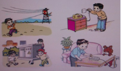 解析 问题(一):图1为在高压电下放风筝;图2为徒手插电插座;图3为攀爬电压箱;图4为用湿布擦插座。 问题(二):小学教师应该从以下方面进行安全教育:(1)交通安全的教育;(2)消防安全的教育;(3)活动安全的教育;(4)学科课堂安全的教育;(5)食品卫生安全的教育;(6)预防自然灾害方面的教育;(7)传染病防控方面的教育。