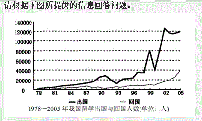 问题 2005年与2000相比,留学出国人数增加了约多少人?() A. 6000 B. 80000 C. 85000 D. 9000
