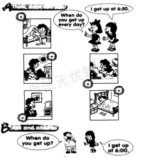 问题 请认真阅读下列教材片段,并按要求作答。 (1)试讲解询问别人几点做某事句型“When dou you….的句法特点。 (2)如指导低年级小学生学习本课,试拟定教学目标和教学重点,设计教学环节。