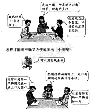 请认真阅读下列材料,并按要求作答。 认识圆 1.你能想办法在纸上画一个圆吗? 2.把在纸上画好的圆剪下来,对折,打开,再换个方向对折,再打开,反...