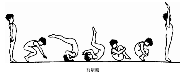 动作方法:直立,蹲撑,两手与肩同宽,体前撑垫,两脚蹬地(腿蹬直),重心前移,使头后、肩、背、腰、臀依次着垫,当滚至背部着垫时,迅速屈膝收腿,两手抱小腿...