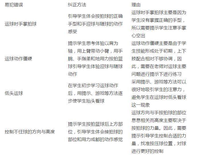 问题 认真阅读下列材料,并按要求作答。 根据上述材料完成下列任务: (1)简要说明“行进间运球”的.教学重点、难点。 (2)如何指导水平二的学生练习,试拟定教学目标。 (3)依据拟定的教学目标,设计易犯错误的纠正方法并说明理由。