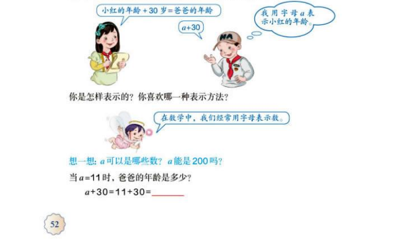 解析 本题考查小学数学教学设计。 (1)从算术思维向代数思维进行过渡,主要体现在“用字母表示数”以及“方程的意义”教学中,学习“用字母表示数”的过程是帮助学生建立数感与符号意识,同时也是学习方程最根本的基础,是连接学生由算术思维过渡到代数思维的纽带,小学一至三年级学生在相当长的时间里都是以算术思维为主,到了四年级伴随着学习的不断深入,从算术思维过渡到代数思维是每一个学生必须面对的过程,这也为今后中学的学习打下基础。 (2)教学目标: 知识与技能目标: 学生认识用字母表示数的意义和作用,并能用含有字母的式子表示简单的数量关系。 过程与方法:通过具体情境中感受用字母表示数的必要性和优越性,渗透符号化思想。 情感态度与价值观目标:在解决问题中体会数学与生活的联系,体会代数符号表示的简洁性从而进一步感受学习数学的价值。 (3)教学过程设计 一、谈话导入揭示课题 同学们,当你的妈妈又在你的耳边唠叨时,你是否有过这样的回答吗,“你这都说了 n 遍了”还有你跟你的同学炫耀时说过这样的话吗,“这游戏我 n 年前就已经玩过了”,那这里的 n 表示多少呢?他是一个不能确定的数,今天这节课我们就来学习用字母表示数。(板书课题用字母表示数) 【设计意图】通过学生自己熟悉的生活经历,使他们感受到字母在我们生活中是比较常用的,并且他还可以来表示一个不确定的数,同时利用熟悉的生活情境将学生立即引入到课堂中来,激发学生的积极性,以此为基础,揭示出本课的课题。 二、展示情景引导探究 (一)出示教材例 1 的情景图, 讲讲从情境中,你得到哪些信息? (二)出示表格 1. 将表格补充完整(列出算式和求出结果)。 2. 表格中的省略号表示什么意思? 3. 你能通过一个简明的式子,表示出任何一年爸爸的年龄吗?(用字母 a 表示小红的年龄) 4. 交流式子进行比较。 5. 想一想 a 可以是哪些数?可以是二百吗? 【设计意图】通过表格内容的完成,使学生能体会到随着小红年龄的变化,爸爸的年龄也在发生变化,而且他们之间始终存在一定的数量关系,让学生通过一个简明的式子表示出任何一年爸爸的年龄, 培养了学生抽象概括的能力,通过询问学生“a 可以是二百吗”,使学生明白在实际问题中字母的取值范围是由实际情况来决定的。 (三)代入解题 设问:当小红的年龄 a=31 时爸爸的年龄是多少? a+30=( )。 【设计意图】通过代入解题的练习,使学生掌握代入解题的方法,同时通过年龄的计算,让学生也能体会到,当他为人父母的时候自己的父母已经是年过半百的老人了,进而渗透尊老爱幼的思想教育。 三、巩固拓展 (一)课件展示图片填一填。 (二)算一算小红买了 9 本笔记本,每本 x 元共需要多少元?(用含有字母的式子表示) 如果每本笔记本 8 元,小红付完钱后找回了 28 元,那她总共付了多少元? 如果她付出相同的钱,却只找回了 1 元,那么笔记本一本多少元呢? 【设计意图】练习的内容设计密切联系新学知识,同时在编排上体现着由易到难的层次性。练习的材料还紧密联系学生生活实际。 对学生而言,具有一定的熟悉性和易操作性。 四、课堂小结,拓展延伸 这节课你有什么收获?还有什么疑问吗? 【设计意图】通过对所学知识的回顾, 帮助学生梳理和进一步巩固新知。对学生“还有什么疑问”的设计又能给学生一个查漏补缺的机会。