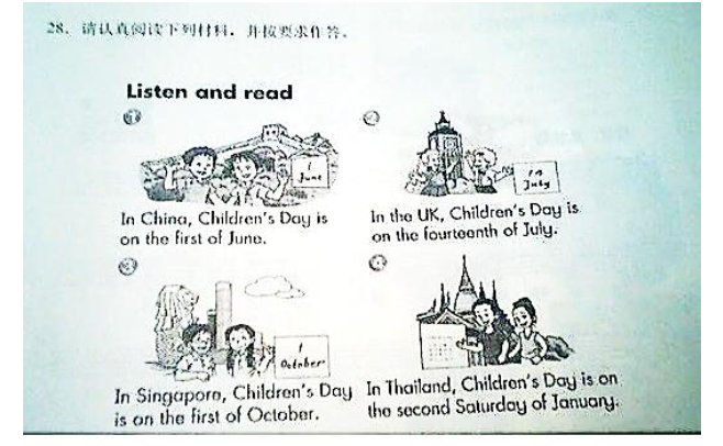 解析 本题考查小学英语教学设计。 (1)综合语言运用能力的形成建立在语言技能、语言知识、情感态度、学习策略和文化意识等方面整体发展的基础之上。语言技能和语言知识是综合语言运用能力的基础,学生在义务教育阶段应该学习和掌握的英语语言基础知识包括语音、词汇、语法以及用于表达常见话题和功能的语言形式等。语言知识是语言运用能力的重要组成部分,是发展语言技能的重要基础。语言技能是语言运用能力的重要组成部分。语言技能主要包括听、说、读、写等方面的技能以及这些技能的综合运用能力。听和读是理解的技能,说和写是表达的技能。它们在语言学习和交际中相辅相成、相互促进。 学生应通过大量的专项和综合性语言实践活动,形成综合语言运用能力,为真实语言交际打基础。因此,听、说、读、写既是学习的内容,又是学习的手段。语言技能目标以学生在某个级别“能做什么”为主要内容,这不仅有利于调动学生的学习积极性,促进学生语言运用能力的提高,也有利于科学、合理地评价学生的学习结果。 (2) Teaching Aims:Knowledge aims: ①Students can master the new words“Singapore,Thailand,UK,Japan”. ②Students can master the sentence structures“Children’s Day is on the...day of...” ③Students can learn the different customs and date of Children’s Day in different countries. Ability aims: ①Students are able to answer the customs and date of Children’s Day in different countries correctly. ②Students are able to learn to talk about Children’s Day with others.Emotional aims: ①After this lesson students would like to learn more festivals customs of different countries. ②Students can be more interested in learning English and sharing their knowledge obtained with others. (3) Step1 Warming up&Lead in 1.Daily greeting. 2.Play the song for the students and ask the question “When is your birthday?” 3.Play the type of celebrations of children’sday, and ask students think when is China’ children’s day? (设计意图:营造和谐的英语学习气氛,使学生带着愉快的心情进入学习状态。通过儿歌激发 兴趣,建立融洽的师生渠道,激发学生思维,唤醒学生对日期表达法的记忆,同时复习旧知。) Step2 Presentation (1) Words learning. ①Look and Guess Write down the new words on blackboard. Teacher uses the flags and the pictures of people of different countries to explain the new words(Singapore,Thailand,UK,Japan)and ask students to guess.Once they come up with the right answer, rewards will be given. ②Point and say Ask one student to say a new word they just learnt, and another student needs to point the picture on the blackboard.(设计意图:通把图片和单词进行匹配,学生可以更容易的记住这些新单词的含义, 进而也为学生理解课文的内容做好了铺垫。) (2) Sentence learning. ①Ask students “When is China’ children’s day?” and explain the sentence in Chinese. Help students to answer “In China, Children’s day is on the first of June.” Those target language need to be written on blackboard. ②Lead students to read the passage and explain the meaning of each sentence in the mean time. ③Then play the video of the passage and ask students to do the ture and false.(设计意图:通过展示 学生熟悉的中国儿童节来开展对话,易于学生理解其他国家儿童节的日期,同时,通过朗读课文和 解释句子含义,加深了学生对新句型的理解,同时学生能理解不同国家的儿童节在不同的时间,但 是含义都一样。进而理解不同国家的文化差异。)