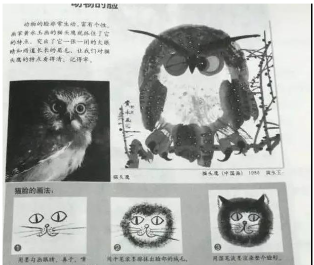 解析 本题考查小学美术教学设计。 (1)①中国画分三大画科,分别是:山水画、花鸟画、人物画。 ②通常,中国画有工笔、写意、工兼写三种表现形式。 ③墨分五色指的是“焦、浓、重、淡、清”或“浓、淡、干、湿、黑”。 (2)知识与技能:掌握中国画中锋、侧锋用笔方法以及干湿浓淡的墨色方法,生动地表现动物脸部特征与情趣。 过程与方法:通过欣赏、描述、分析、实践掌握绘画步骤和用笔、用墨方法,大胆对动物的脸进行夸张与表现。 情感态度和价值观:激发对中国传统绘画的热爱之情,逐渐形成人与动物、人与自然和谐共处的可持续发展意识。 (3)活动一:作品赏析 展示作品猫头鹰,引导学生欣赏并思考:作品运用了什么绘画形式?作品中的猫头鹰与生活中 的猫头鹰有什么不同? 学生观察思考,教师总结:以中国画的创作形式进行创作,作品中的猫头鹰更加的生动,更具有活力。 继续引导学生观赏作品,并思考:画家运用了什么笔墨技法来表现猫头鹰的? 学生交流探讨,教师总结:以湿笔浓淡结合的方法画身体,中锋浓墨勾眼圈、点眼睛。画家表现注重中锋侧锋用笔、墨色注意干湿浓淡的变化。 【设计意图】通过对比的方式引导学生联系生活,回归生活,激发了学生热爱自然、热爱动物的情感,并且通过层层深入的问题可以更好的激发学生对水墨动物的理解。 活动二:示范讲解 教师以小猫为例,进行示范讲解。 ①脸型——先用几笔淡墨画出小猫的脸型。 ②五官——在脸的中间位置用淡墨中锋勾出眼睛的外形,在眼睛下方中间的位置侧锋画出鼻子和嘴,为了使眼睛更有神,再用重墨画眼珠。 ③毛——淡墨以皴擦法表现小猫脸部短而硬的毛。然后,笔锋蘸淡墨,笔尖蘸少量浓墨,以侧锋按压在一张废纸上,使笔尖水分变少并形成扁平的“散锋”,在小猫头顶及耳朵周围用毛笔的“散锋”适当添画短而稀疏的毛。 【设计意图】通过示范的方式可以将理论与实践相结合,更加直观的引导学生学习,解决技法上的难点。