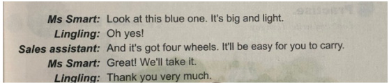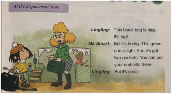 解析 (1) Key points: Words: The meaning and the pronunciation of the words such as “light, heavy, big, small...”. Target language: “It’s heavy/small/big and light...”. Difficult Points: How to give suggestions when shopping and describe things’ feature by using the correct sentence structure “It is…”. (2) Knowledge aims: Students can understand the meaning of new words about describing objects like “light, heavy, big, small...”. Students can master the sentence structure: “It’s heavy/small/big and light...”. Ability aims: Students can use the sentence structure by listening and reading some easy sentences. Students can describe things’ feature and give some advice. Emotional aims: Students would love to know more about the features of many things in daily life. Students will be more confident when communicating with others in English. (3)Warming up and Lead-in Greet students as usual and play a song about travelling. Ask them some questions like if you want to travel, what luggage should you bring? And lead students to answer the question and lead in the topic. (设计意图:通过播放歌曲和提出问题可以吸引学生的兴趣和注意力,发散思维并很自然过渡到本节课所学话题) Presentation Show some clips to teach “light, heavy, small, big...”; Show some real objects like cup and lead students to describe it: It’s heavy... It’s light... Then ask students to read the words and sentences one by one after the teacher in different ways. (设计意图:通过不同的方式呈现单词和句型,增加单词教学的趣味性,让学生更容易接受和掌握;利用实物呈现句型,活动的衔接性较好。) Practice Activity 1 High and Low voice Lead students to read the sentences: It’s heavy... It’s light... on the blackboard. When teacher reads sentences in a low voice, students should read in a loud voice and vice versa. Activity 2 Do an antonym match heavy big small light Then work in pairs to role play the dialogue. (设计意图:采用游戏的方式练习句型能够增强句型学习的趣味性,寓教于乐,增强单词的识记效果;通过连线的方式,不仅能够巩固句型还能锻炼学生的反应能力,也能锻炼学生的听力。) Production Let students make a dialogue by using some words about describing objects and sentence patterns in groups of two: It’s... and choose some groups as representatives to give a performance and teacher gives some positive comments. (设计意图:通过小组活动的方式培养学生的团队合作能力和团队意识,让学生将所学知识运用到日常生活中去,符合新课标培养学生的综合语言运用能力的标准。)