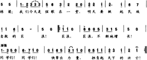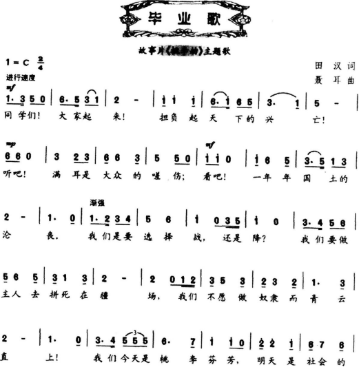 解析 (1)歌曲特点 《毕业歌》创作于1934年,田汉词,聂耳曲,电影《桃李劫》的插曲,是一首进行曲风格的群众歌曲。大切分、附点等节奏型给人一种铿锵有力、坚定的感觉。歌曲表达了电影中人物对自身遭遇的愤恨不满.以及强烈的爱国主义情感。 (2)教学目标 情感态度与价值观目标:通过聆听、学习歌曲,感受歌曲表达的情感,点燃爱国热情与民族主义激情。 过程与方法目标:通过聆听体验、小组讨论的方法,提高自身的演唱水平。 知识与技能目标:了解休止符在歌曲中的作用,并有感情地完整演唱歌曲。 (3)导入环节 ①教师播放歌曲《义勇军进行曲》,引导学生聆听歌曲,并提出问题:这首歌是什么歌由谁作曲这位音乐家还有哪些代表作品 (学生自由回答) ②教师总结:聂耳这位音乐家创作了我们的国歌《义勇军进行曲》以及春节联欢晚会上经常播放的《金蛇狂舞》等耳熟能详的作品。 ③接下来,我们再来学习一首聂耳先生创作的歌曲《毕业歌》,听听这首歌曲和“毕业”有什么关系 由此引入本课。 【设计意图】 采用学生耳熟能详的歌曲《义勇军进行曲》进行导入,可以激发学生的学习兴趣,吸引学生的注意力,使学生更好地进入课堂学习;既锻炼了学生的思考能力,又将课堂思路引领到了本节课的授课内容中;从课下到课上形成了一个自然、生动的过渡,调动学生学习音乐的积极性,也同新课程标准理念中“以音乐审美为核心,以兴趣爱好为动力”这一理念相契合。