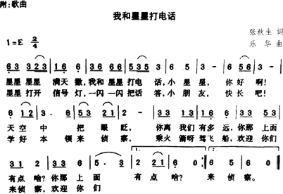 解析 (1)歌曲为2/4拍,五声羽调式。全曲是由五个乐句组成的一段体结构。第一乐句有两个小乐句组成,可看作是自由模进,音程在“do、mi、sol、la”四个音之间跳动,旋律进行既好听又好记;第二、三乐句,作者巧妙地将节奏变宽,造成句法的鲜明对比和旋律的极不稳定,使音乐向下发展;第四乐句在后两小节旋律又回到了第一乐句的节奏型,与歌词较为贴切,具有承上启下的作用;最后一个乐句又将节奏、旋律加以扩展,把歌曲的情绪推向高潮而结束。虽然整首歌曲的节奏复杂多变,但比较符合儿童心理,语言、旋律也较通俗易懂,容易记忆。 (2)教学目标 情感态度与价值观目标:激发对大自然的求知和好奇,激励学科学的积极性。 过程与方法目标:能较准确地掌握领唱、齐唱这一种歌唱形式并能主动地参与活动。 知识与技能目标:学会歌曲《我和星星打电话》,并能随歌曲做表演。 (3)教学环节 ①学生跟随音乐伴奏齐唱歌曲。 ②播放音乐,学生聆听不同的演唱形式。 师:刚才我们一直用齐唱的方式在演唱歌曲,但范唱中却采用了不同的演唱形式,分为了领唱和齐唱。 ③看歌词。观察领唱和齐唱的内容。 ④看视频,掌握领唱和齐唱这一种歌唱形式(领唱是安排在齐唱或合唱的开始部分或中间部分的独唱,因该独唱具有引领众人歌唱的作用,故称“领唱”,齐唱是指一个歌唱集体,大家都唱同一个旋律,也就是单声部的群唱。) ⑤老师唱领唱部分,同学们唱齐唱部分。 ⑥同学来当小老师演唱领唱的内容,其他同学唱齐唱的内容。 【设计意图】 新课标指出,一、二年级的学生能够有表情地独唱或参与齐唱。所以我引导学生通过聆听、观察、参与表演等活动由浅入深、层层递进的方式逐步掌握领唱扣齐唱这一演唱形式,还能激发学生的表现能力和集体合作的意识。