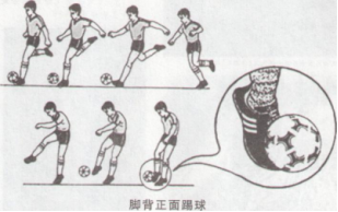 相关内容:教材,要求,动作,要点,直线,球侧,大腿,小腿,前摆,脚面,发力,脚背,正面,击球,身体