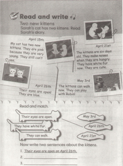 解析 (1)小学英语教学中使用多媒体的方法 ①巧用多媒体,激发学生的学习兴趣。 ②巧用多媒体,创设情境,引入新课。 ③巧用多媒体,活化教材,寓学于乐。 ④巧用多媒体,提高利用时间的效率。 ⑤利用网络技术,扩展学生的知识面。 (2) Teaching Aims Knowledge aim: Students will be able to learn and master the structure to describe animals. Ability aim: Students can make sentences through imitation of the example. Their abilities of making sentencescan be improved. Emotional aim: Students will get more interest in learning English and in protecting animals. (3)导入环节和新知呈现环节 Lead—in(导入环节): ①Show the video about different kinds of cats. Ask students some questions: Q1: What can you see in the video Q2: Which kind of pet do you like best ②Free talk. Ask some questions about pet, for example: Q1: Have you ever kept a pet Q2: How does it like Q3: What color is it Q4: When is its birthday 【设计意图1 视频和讨论的目的是为了吸引学生的注意力,同时明确本课的话题。 Presentation(新知呈现环节): Show the picture about kittens. ① Show the first picture, and ask students "What's this". Students may give such answer as "They are pigs""They are mice", and so on. ② Show other pictures. Student will understand that they are kittens. ③Ask students to pay attention to the date and reorder the pictures. Read and match. ① Show some sentences about pictures and ask students to try to match it. Such as: They have white fur.May 3rd. They can walk.April 21st. ② Let students review the knowledge they learned about the date: We should put the "on" before the month. ③ Make sentences through imitation of the example "Their eyes are open on April 26th." Invite some students to write two sentences about the kittens on the blackboard. Ask students to make new sentences to describe the animals they like. 【设计意图】 通过图片让学生更形象地感受到小猫的变化。通过句子配对的方式,让学生学会组词造句,提升描述事物的能力。
