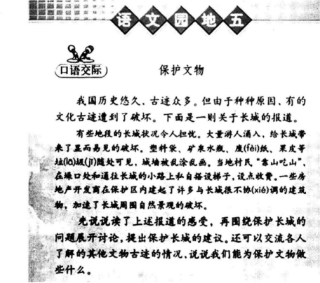 解析 (1)语文课程是一门学习语言文字运用的综合性、实践性课程。义务教育阶段的语文课程应使学生初步学会运用祖国语言文字进行交流沟通,吸收古今中外优秀文化,提高思想文化修养,促进自身精神成长。工具性与人文性的统一是语文课程的基本特点。口语交际教学本身就致力于提高学生的表达能力,这是语文课程实践性的要求。“保护文物”这一主题的设置不仅有利于增强学生对我国悠久历史文化的了解,感受优秀文化的熏陶,更能引导学生形成痛惜文物惨遭破坏进而珍爱保护文物的贵任感,使学生能在生活中践行优秀的精神文化,促进其自身精神品质的健康成长。 (2)教学目标 知识与能力目标:能简要谈谈文物保护的现状,交流关于保护文物的个人感受;能以“保护文物”为主题,结合个人的相关见闻,提出保护文物的措施或建议。 过程与方法目标:联系生活经验,开展小组合作讨论,分条说出保护文物的具体做法。 情感态度与价值观目标:激发了解中国文物古迹的兴趣,形成并提高保护文物意识,树立“保护文物,人人有责,从我做起,从小处做起”的观念。 (3)课堂提问设计 ①教师展示长城绵延数里的壮景图片以及遭到破坏后的图片和相关报道,提问:同学们在对比图片之后,有什么样的感受请大家谈一谈。 【设计理由】 通过直观展示不同方面的、充满反差感的资料,让学生在为长城感到骄傲、对长城充满向往的同时,深刻感受到长城不容乐观的现状,产生为之痛惜与担忧的情感,从而自觉形成保护长城的强烈意识,为后续开展口语交际活动热身。 ②教师出示关于保护长城措施多方的相关资料,提问:对于保护长城,结合生活经验,你有什么样的意见或建议呢请思考并与组内其他成员展开讨论。 【设计理由】 教师初步出示与保护长城措施有关的资料,引导学生结合个人生活经验进行思考,既有助于锻炼和提升学生的思维能力,又能够通过组内的交流与讨论增强个人的语言组织表达能力,强化学生的合作意识与合作能力。 ③提问:除了长城,你还了解到有哪些文物古迹正在遭受破坏或者已经被破坏请谈一谈你了解到的情况并与小组成员共同设计几条关于文物古迹保护的宣传标语。 【设计理由】 展示学生搜集资料的能力并有效拓展课堂教学资源,注重语文与生活的联系;提升学生倾听他人、表达自我的能力:通过小组合作设计宣传标语.进一步强化学生的合作意识并尊重语文实践性的特点,使学生的表达与写作能力在合作中得到综合发展。