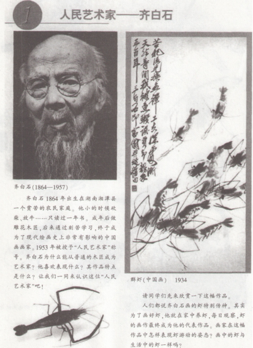 相关内容:材料,要求,根据,任务,齐白石,蛙声十里出山泉,理解,教学内容