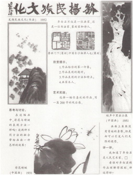 相关内容:材料,要求,根据,任务,齐白石,蛙声十里出山泉,理解