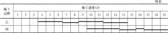 解析 1.根据工程特点,该工程只能组织无节奏流水施工。除此之外,常用的组织方式还有:等节奏流水施工、异节奏流水施工。 2.求各施工过程之间的流水步距: 1)各施工过程流水节拍的累加数列: 甲:26911; 乙:35811; 丙:46710。 2)错位相减,取最大值得流水步距: 流水施工计划图如下所示:
