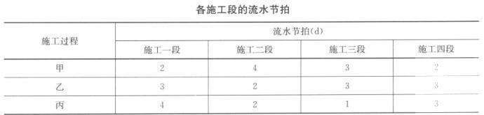 某拟建工程由甲、乙、丙三个施工过程组成;该工程共划分成四个施工流水段,每个施工过程在各个施工流水段上的流水节拍如下表所示。按相关规范规定,施工过程乙完成后...
