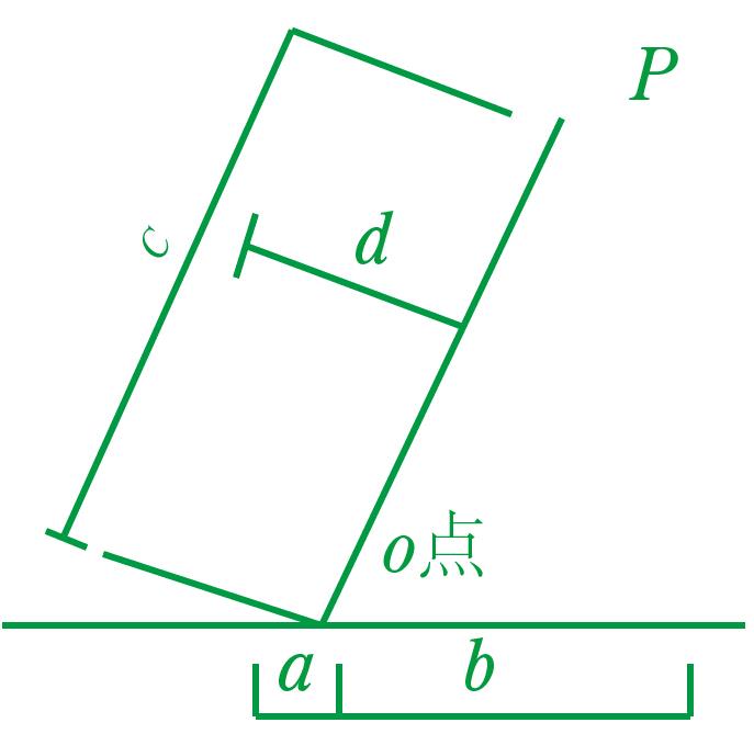 某构件受力简图如右图,则点O的力矩Mo为( )。 A. P·a B. P·b C. P·c D. P·d