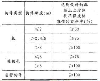 解析 当无设计要求时,对于跨度≦8来的梁 (或拱壳),底模及支架拆除时的混凝土强度应大于或等于设计混凝土立方体抗压强度标准值的75%。具体规定见下表。