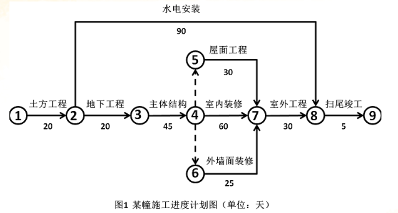 解析 <1> 、资源需求计划还应包括资金需求计划、劳动力需求计划和施工机械需求计划。 <2> 、工期延误5天,为了保证工期,需要从主体结构、室内装修、室外工程三个工作中累计压缩工期5天。根据赶工参数表,压缩主体结构2天,费用为2700×2=5400元;压缩室内装修3天,费用为3000×3=9000元。 <3> 、不妥之处一:中砂含泥量不得大于3%; 正确做法:拌制防水砂浆使用的中砂含泥量不得大于1%。 不妥之处二:防水层施工要求一遍成型; 正确做法:防水砂浆宜采用多层抹压法施工。 不妥之处三:及时进行保湿养护7天; 正确做法:养护温度不宜低于5°C,并应保持砂浆表面湿润,养护时间不得少于14d。 <4> 、(1)监理工程师提出的污染物检测时间不正确。 民用建筑工程及室内装修工程的室内环境质量验收,应在工程完工至少7d以后、工程交付使用前进行。监理要求的5d时间不满足要求。 (2)①室内饰面采用的天然花岗岩石材或瓷质砖使用面积大于200m2时,应进行放射性指标的抽查复验。 ②室内装修中采用的人造木板或饰面人造木板面积大于500m2时,应进行游离甲醛含量或游离甲醛释放量抽查复验。 ③室内装修所采用的水性涂料、水性胶粘剂、水性处理剂必须进行VOC和游离甲醛含量的检测;溶剂型涂料、溶剂型胶粘剂必须进行VOC、苯、甲苯+二甲苯、游离甲苯二异氰酸酯(TDI)含量的检测。