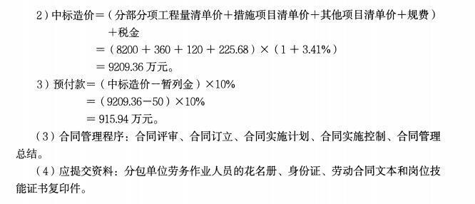 解析 (1)评标小组的做法:正确。不可作为竞争性费用的项目:措施费中的安全文明施工费、规费、税金。