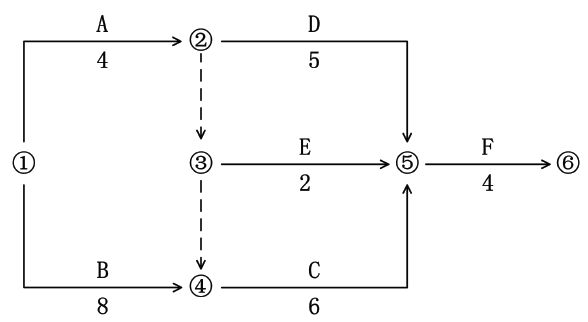 解析 1.工作之间的逻辑关系,补充如下: 双代号网络图绘制如下: 关键线路是B→C→F,总工期为18 个月 2.事件一:工期索赔不合理。虽然此事件是非承包人原因造成,但是工作D 延长2 个月没有超过总时差,对总工期没有造成影响,所以工期索赔不合理。 事件一:费用索赔合理。此事件是非承包人原因造成,而且给施工企业造成了人工费、机械费损失2万元,所以费用索赔合理。 事件二:费用索赔合理,此事件是由于业主要求提前工期引起,是非承包人原因造成的,由于赶工期所增加的费用2 万元可以向业主提出费用索赔要求,所以费用索赔合理。 3.关键线路还是B→C→F,总工期变为16 个月 工作C 的总时差为0,工作E 的总时差为,6 个月