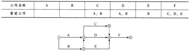 问题 根据表中给出的逻辑关系绘制的双代号网络图如下图所示,图中绘图的错误是()。