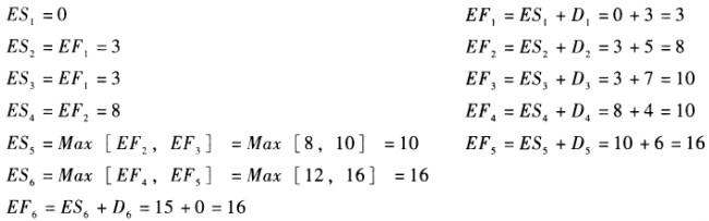 解析 计算最早开始时间和最早完成时间: 已知计划工期等于计算工期,故有:TP=Tc=EF6=16. FF4=LAG4,6=3。 LF5=EF5+TF5=15+0=15。