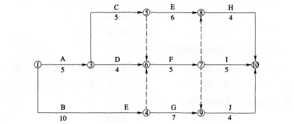 某工程项目可以分解为A、B、c等10项工作,根据各项工作之间的逻辑关系及持续时间编制的双代号网络计划如下图所示(时间单位:周)。 根据题意,回答下...