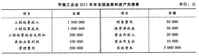 问题 共用题干 甲施工企业2011年年末损益表和资产负债表中有关资料如下:根据以上资料,回答下列问题: