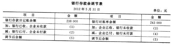 某企业2012年5月31日银行存款日记账余额238000元,银行对账单余额243000元。经逐笔核对,发现有几笔未达账项:(1)企业偿还A公司货款25...