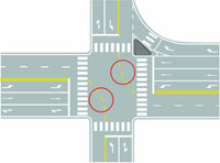 选项 A、路口导向线 B、非机动车引导线 C、车道连接线 D、小型车转弯线