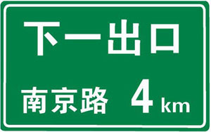 这个标志是何含义?A、高速公路下一出口预告 B、高速公路右侧出口预告 C、高速公路左侧出口预告 D、高速公路目的地预告