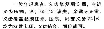 问题 该患者出现黏膜压痛的原因是 A 基托翘动 B 义齿下沉 C 咬高 D 基托过小 E 基托不密合