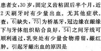 选项 A.冠边缘刺激牙龈 B.接触点松 C.冠外形不好 D.患者未认真刷牙 E.对有楔入式牙尖