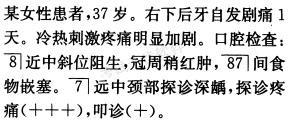 解析 从病人的局部表现看, 自发性阵发性痛,温度刺激加剧疼痛,探诊可引起剧烈疼痛,可能的诊断是急性牙髓 炎。开髓引流是急性牙髓炎最有效的应急处理。当疼痛缓解后,可以行根管治疗术加的拔除。